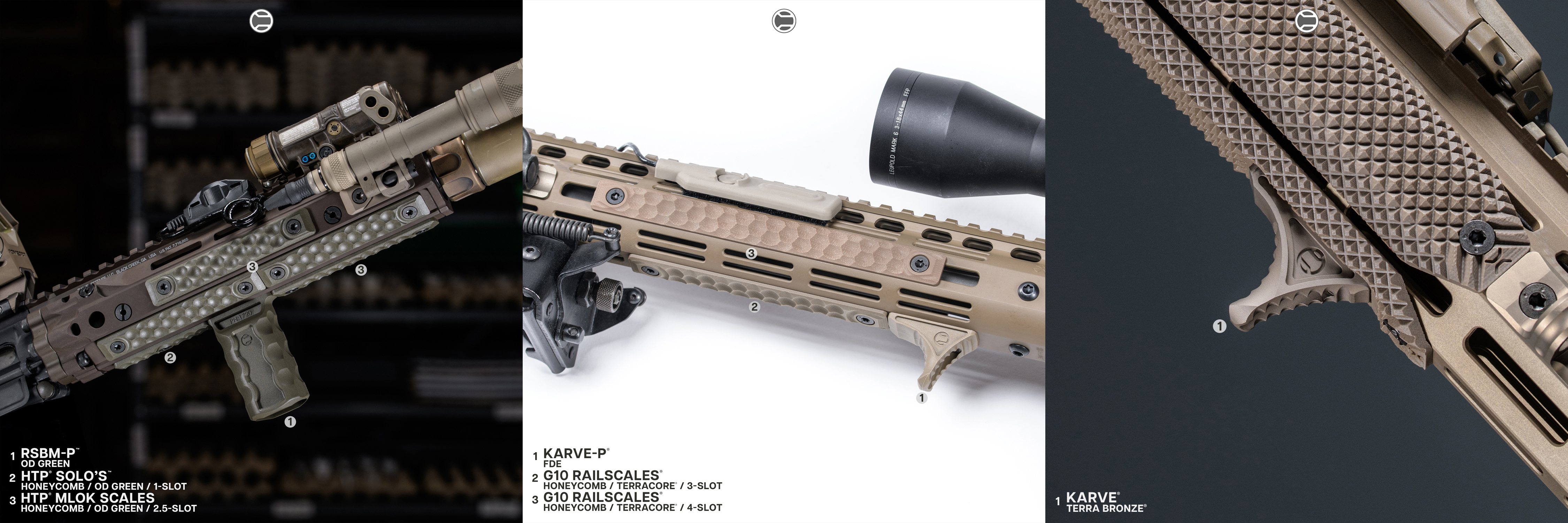 - HTP® (High Temp Polymer) Scales: Our HTP® line is specifically engineered to be fully NIR-compatible. These injection-molded scales offer the same patented textures as our G10 line while ensuring your rifle remains "dark" under night vision.