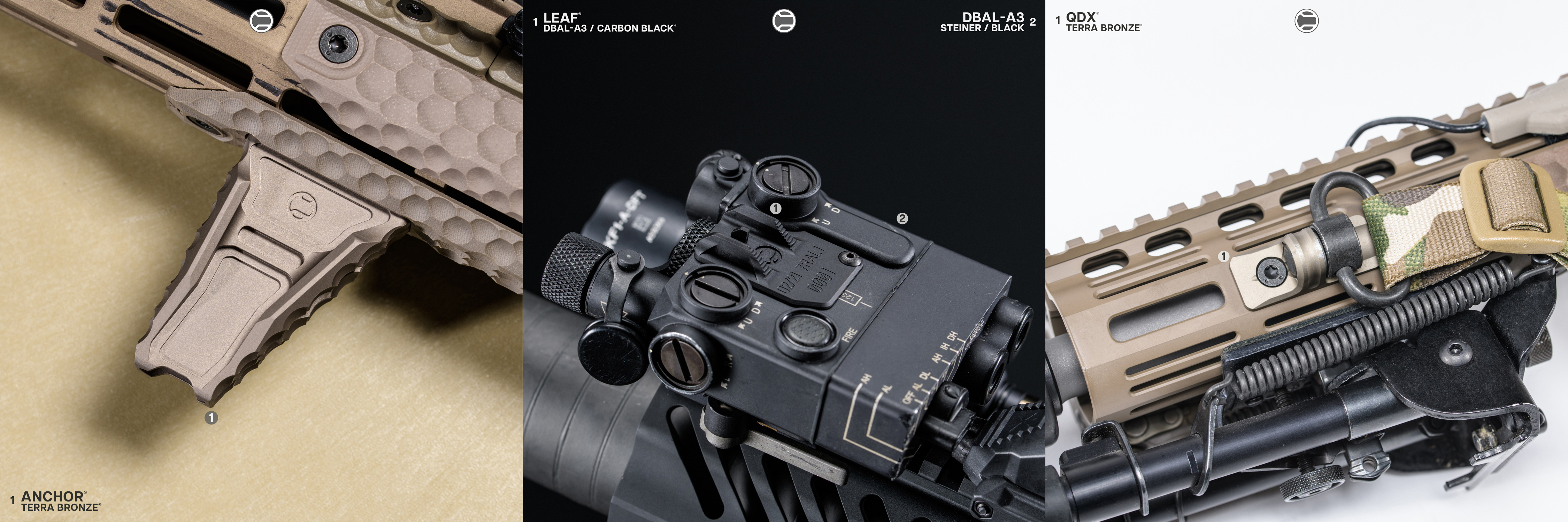 - LEAF® Iron Sights: Reclaim valuable upper rail space for pressure switches or laser aiming modules by mounting your front sight directly to your DBAL or PEQ.
